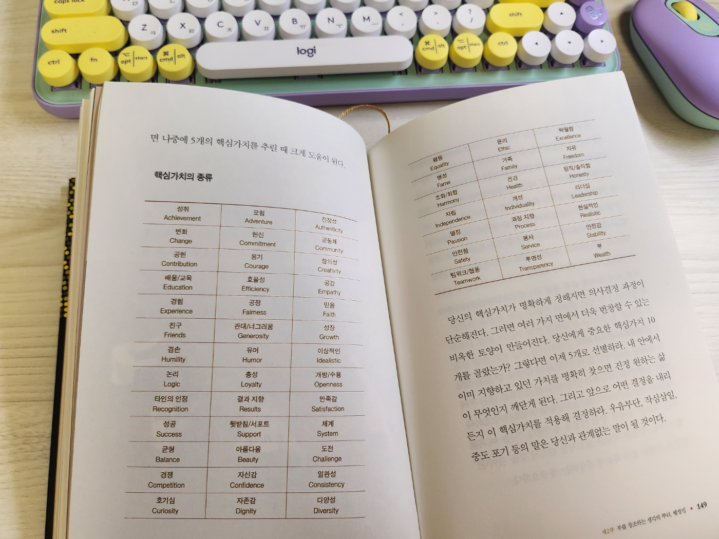 내가 선택한 핵심가치 10개는 공헌, 성공, 성장, 열정, 탁월함, 가족, 건강, 부, 도전, 자유 이고